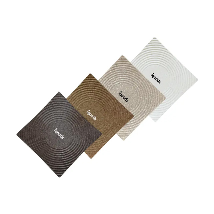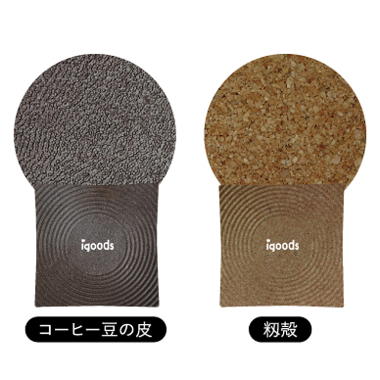 日本各地で廃棄された素材を再利用した、環境にやさしいコースター。ざらりとした素朴な風合いが特徴で、テーブルに自然と馴染みます。名入れにも対応しており、オリジナルのノベルティやギフトとしてもおすすめです。