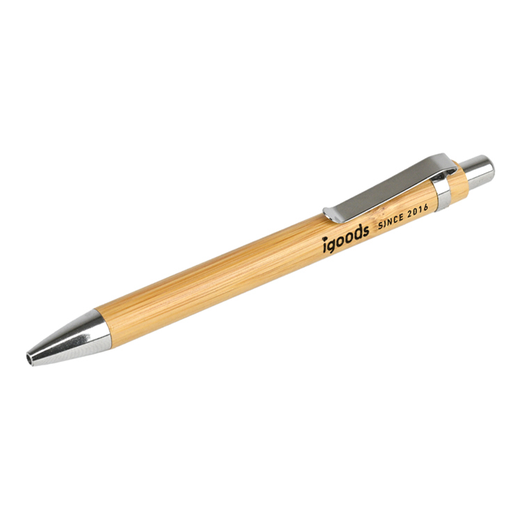 持ち手に天然竹を使用した、ナチュラルな風合いのエコボールペン。しっくりと手に馴染む質感で、見た目もおしゃれ。約25mmのクリップ付きで携帯性も抜群。名入れ可能で、ノベルティや記念品にもおすすめです。