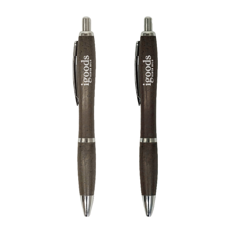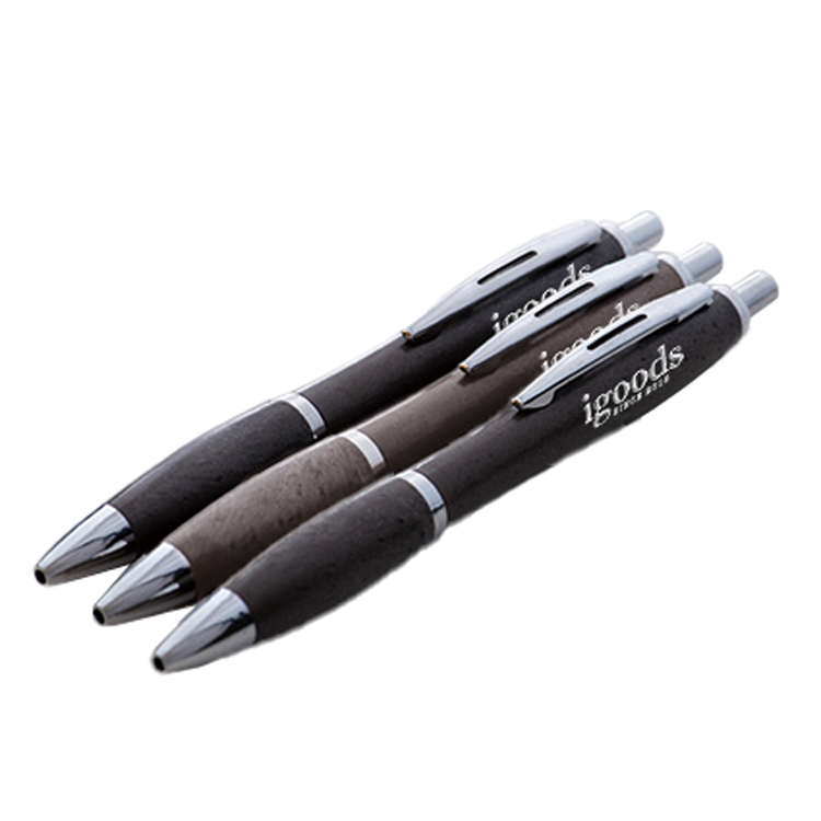 廃棄予定のコーヒー粉を約15%使用した、環境配慮型のボールペン。手に馴染む形状と洗練されたデザインで、使い心地がよいです。名入れ可能で、ノベルティや記念品に最適のアイテム。個箱入りで配布にも便利です。