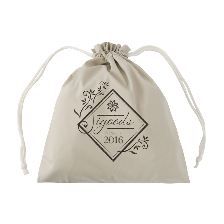 竹由来の天然繊維を50%使用したサステナブルな巾着袋。500mlペットボトルが入る大容量で、持ち運びに便利です。コンパクトに畳めるため、外出や旅行のサブバッグにおすすめです。名入れ可能で、ノベルティや記念品にぴったりです。