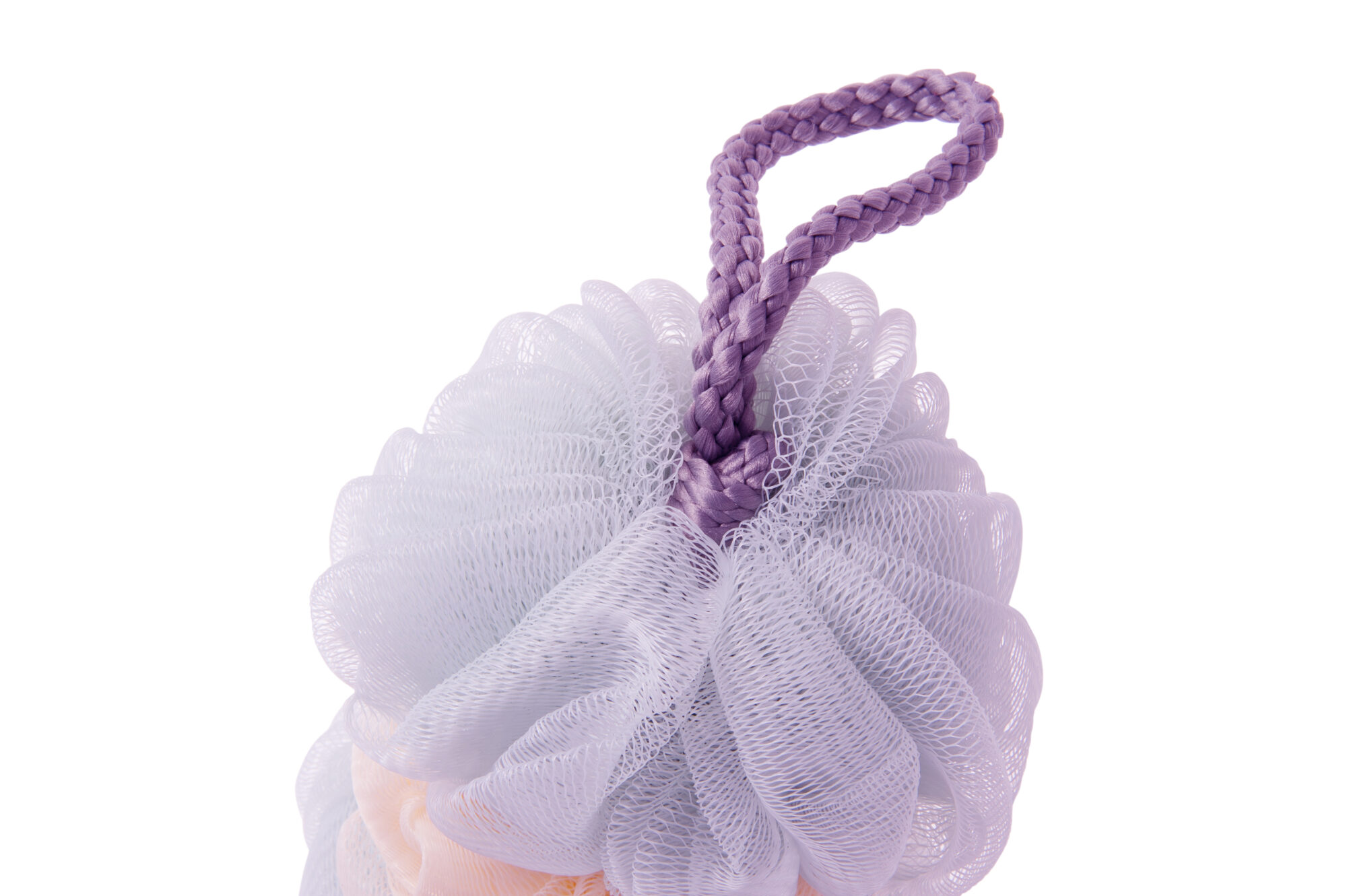 2層になっているボディスポンジ。1人でも背中まで満遍なく洗えます。2層構造のネットがたっぷりと空気を含み、揉みこむたびにきめ細やかな泡がたっぷりと泡立ちます。ネットや紐部分の色変更が可能です。